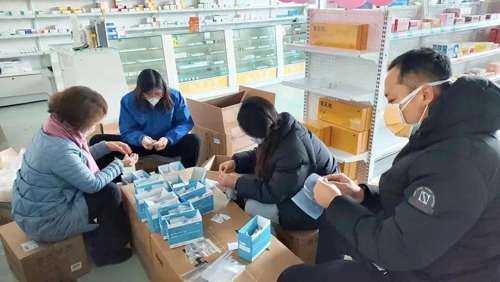 在购药高峰期,发热、咳嗽药“一药难求”,随着店员新冠感染剧增,公司旗下徐州中健连锁营业的药店从12家缩减到4家。12月中旬至下旬,面对每天几百位排队购药的市民,公司干部员工、党员轮番上阵支援一线,从仓库取货、分装、维持现场秩序再到协助药品销售,为广大市民购买抗原检测试剂、四类药及防疫物资提供了坚实保障。